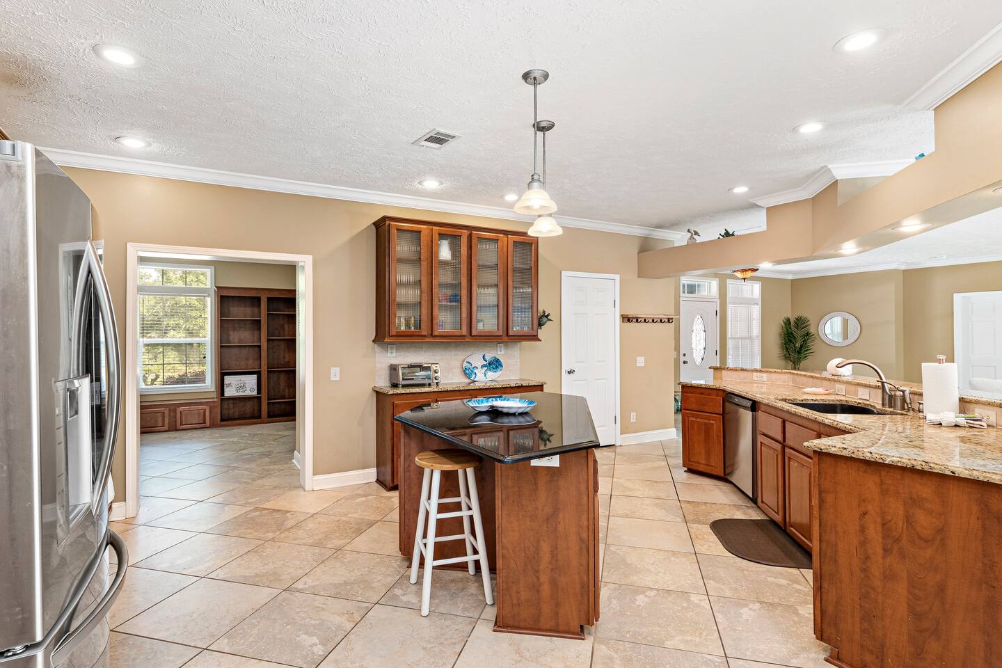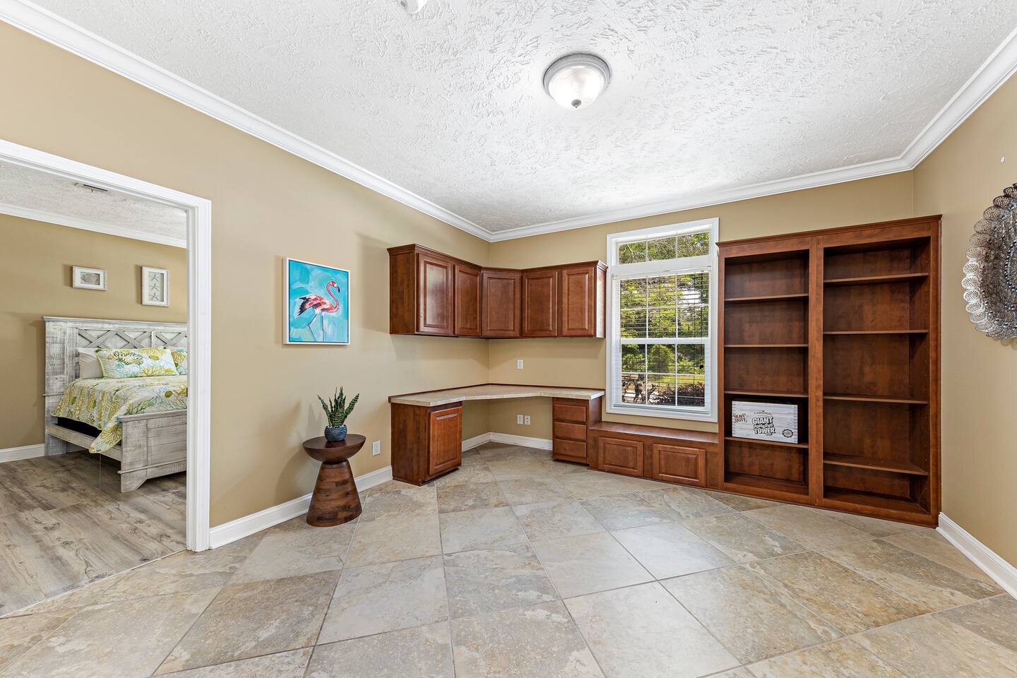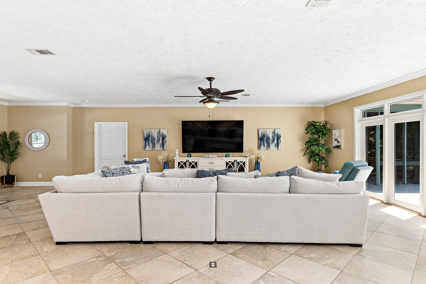 - Perfect for families. - Pet Friendly with large backyard. - Pet friendly beach a short drive away. - Close to Bon Secour hiking trails. - Close to world class Golf Courses. - Fishing pier within walking distance. - Small, community beach on the Bay. - Large, private backyard. - 85" TV in living area. - Pet walking trails. - Fully equipped kitchen (food items not provided). - Very large master bedroom. - Dedicated office space with built-in desk. - Low-density RV park on the Bay.