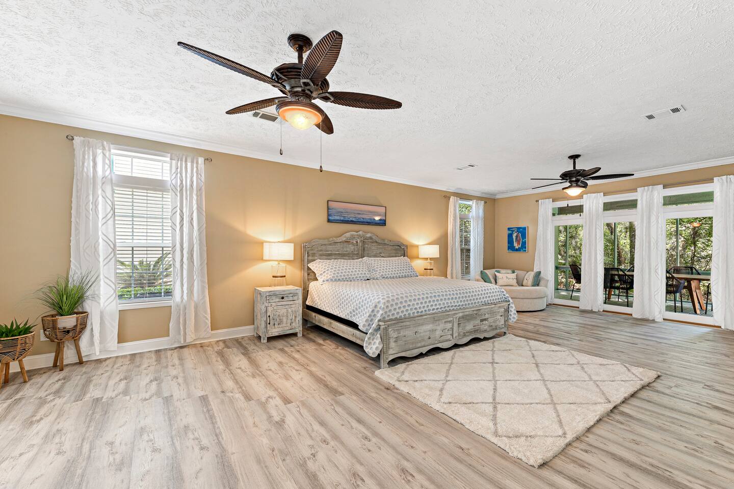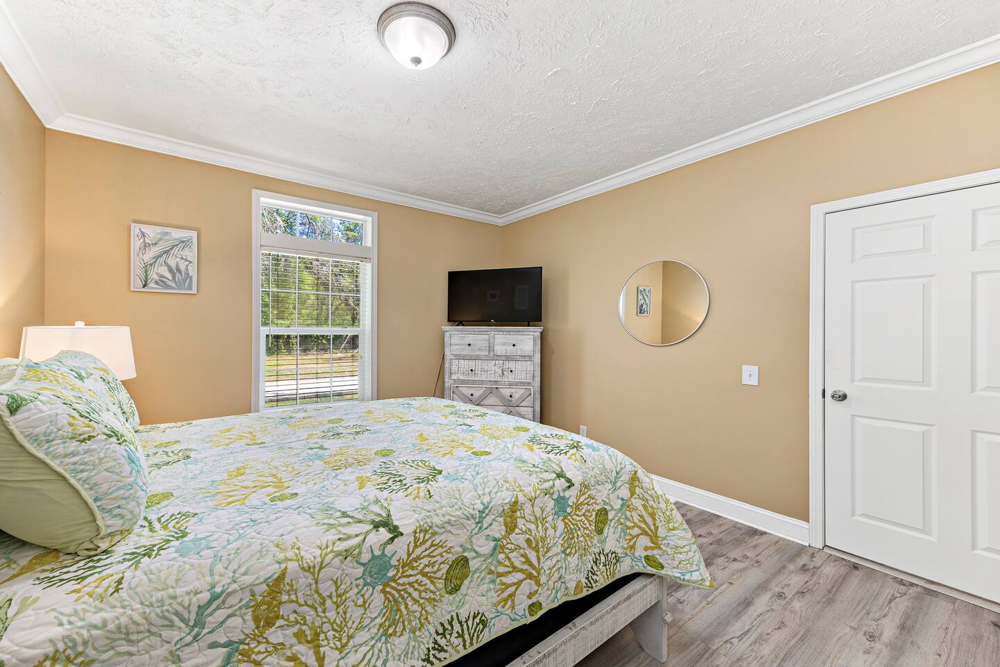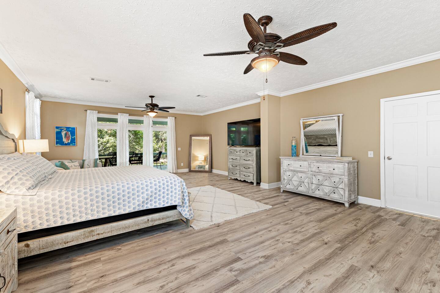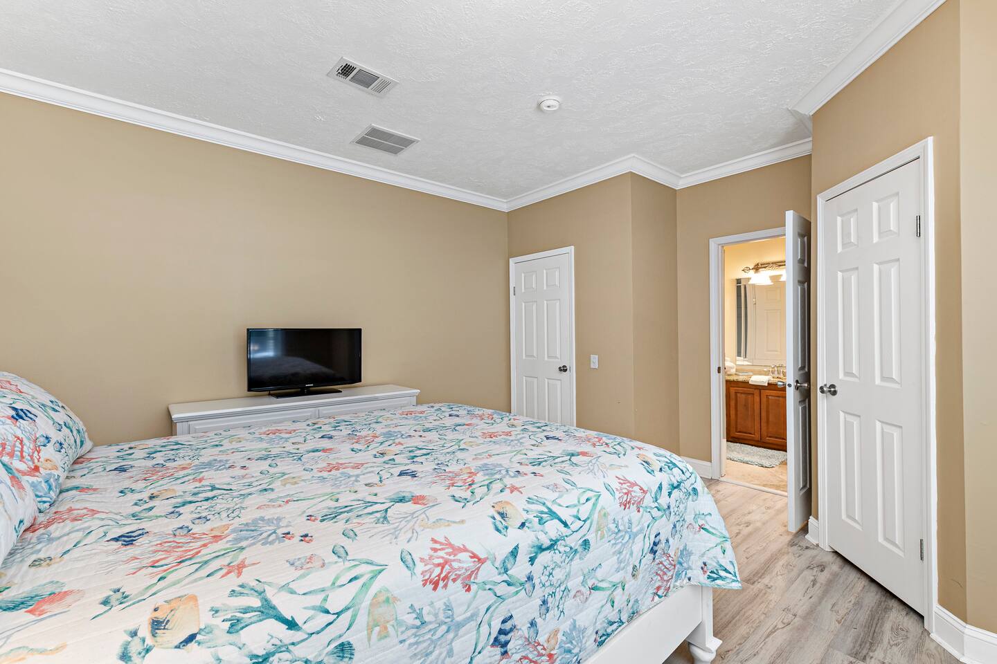 Large master bedroom with King Size bed. Split unit with the remaining three bedrooms on the opposite site of the house. two with queen beds and the other with bunks. TVs in each room.