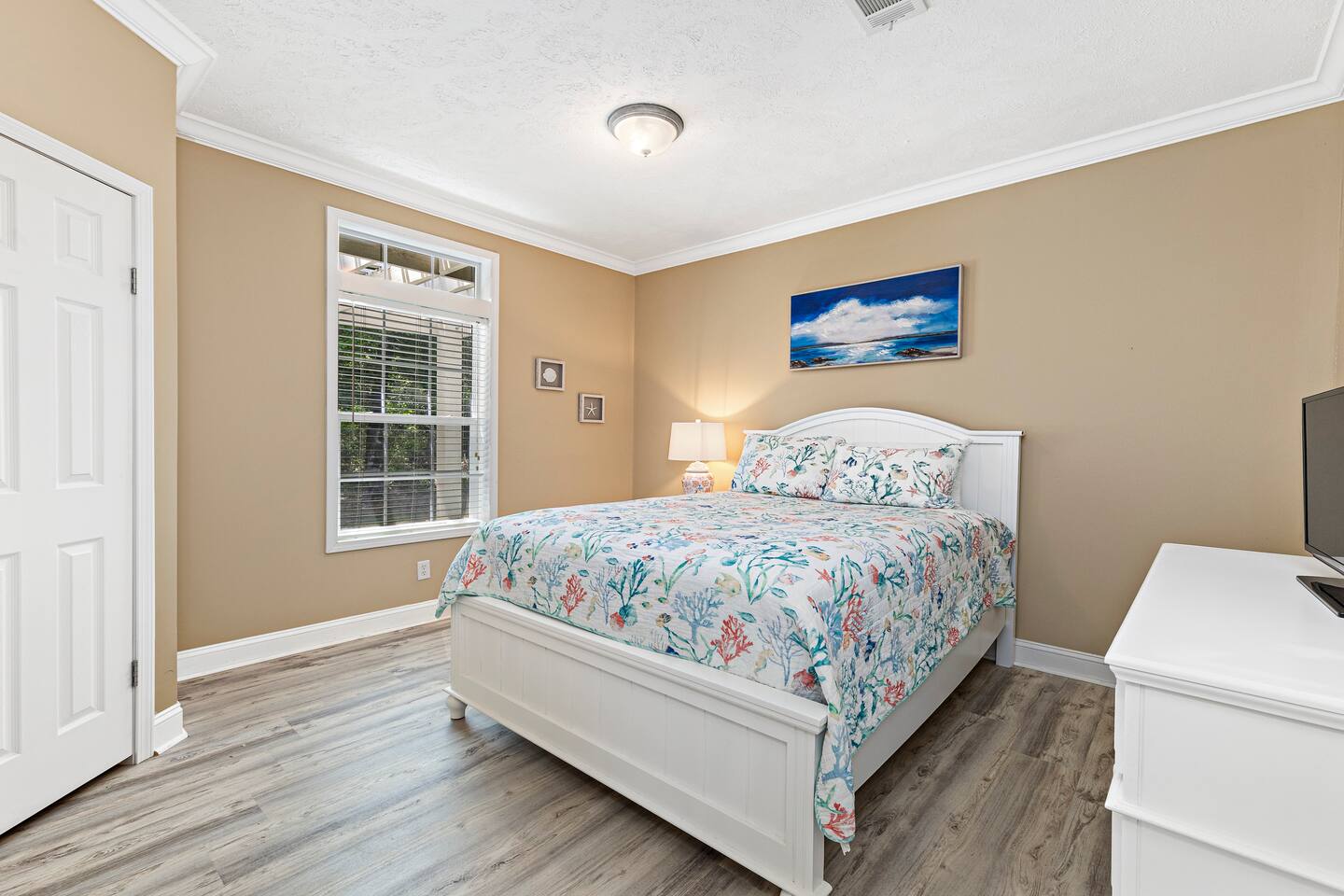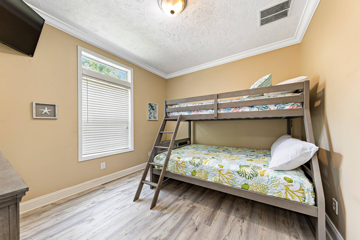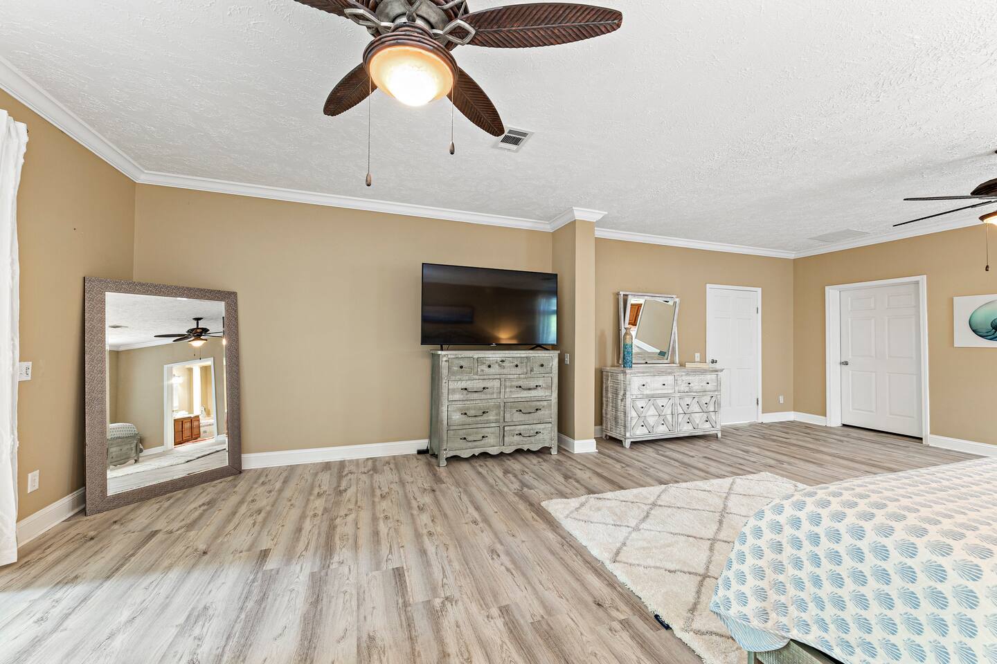 Large master bedroom with King Size bed. Split unit with the remaining three bedrooms on the opposite site of the house. two with queen beds and the other with bunks. TVs in each room.