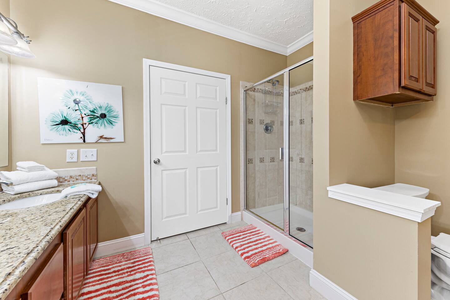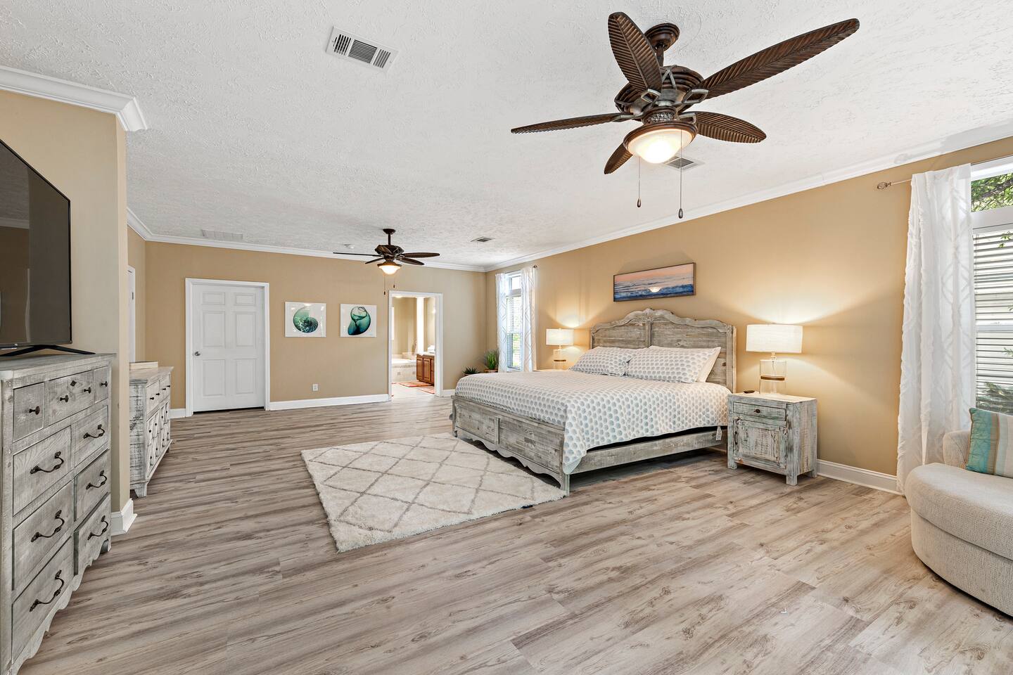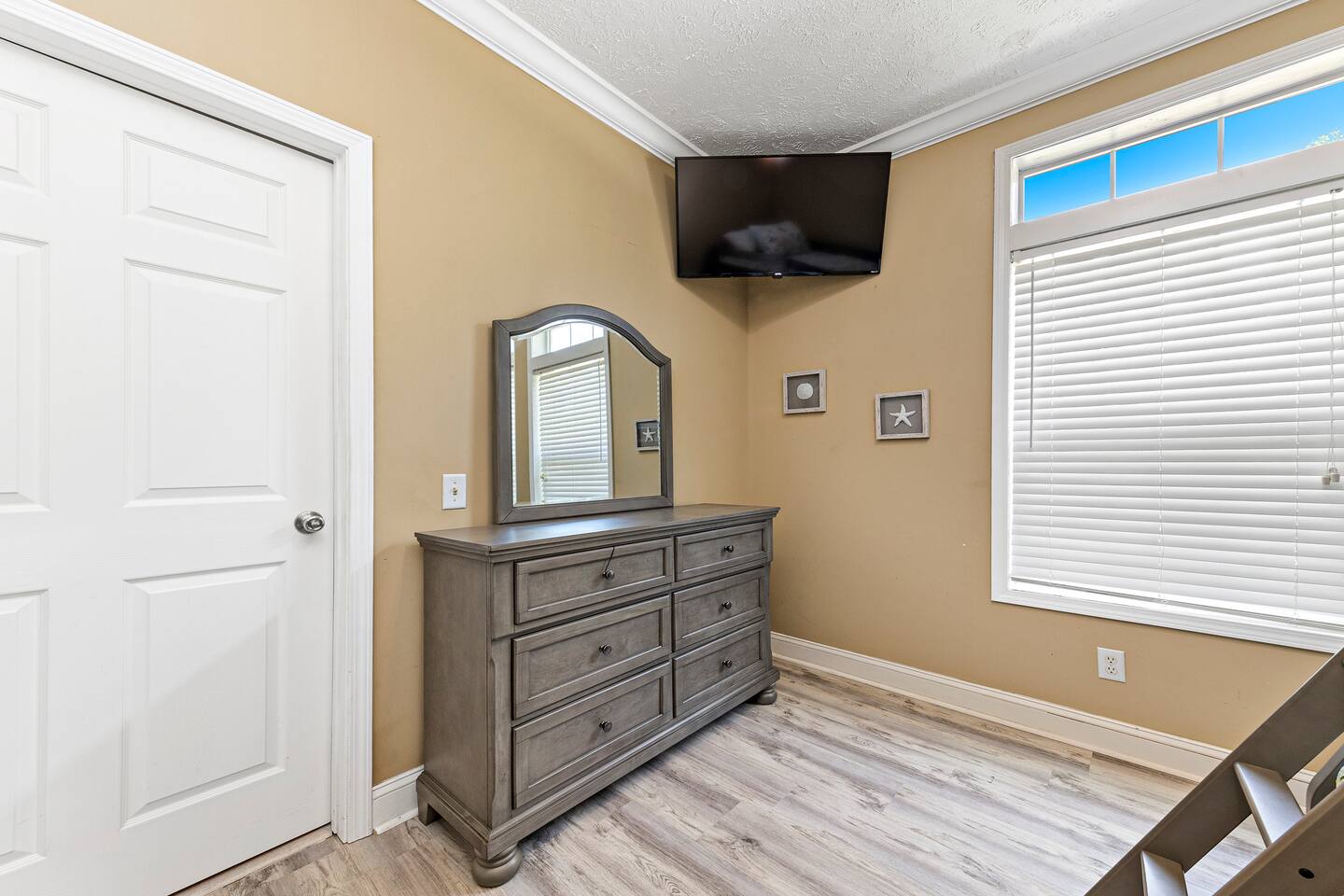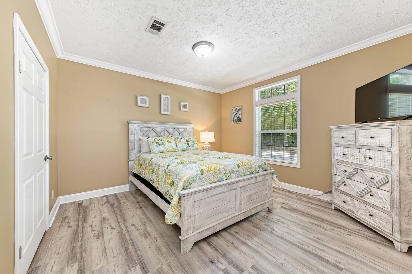Large master bedroom with King Size bed. Split unit with the remaining three bedrooms on the opposite site of the house. two with queen beds and the other with bunks. TVs in each room.